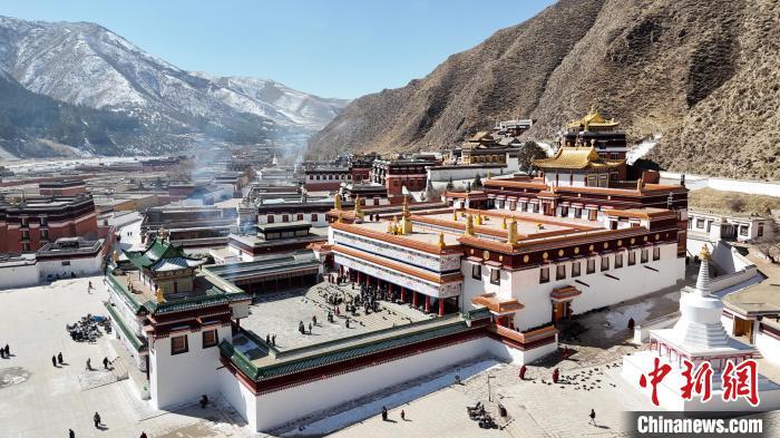 2月28日,航拍“世界藏學(xué)府”拉卜楞寺。(無人機照片)九美旦增 攝