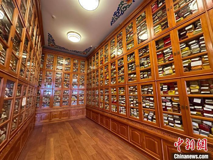 2月28日,修繕后的拉卜楞寺藏經(jīng)樓內(nèi),所藏古籍文獻整齊擺放于新書架上。中新社記者 丁思  攝