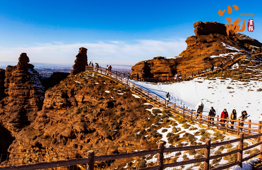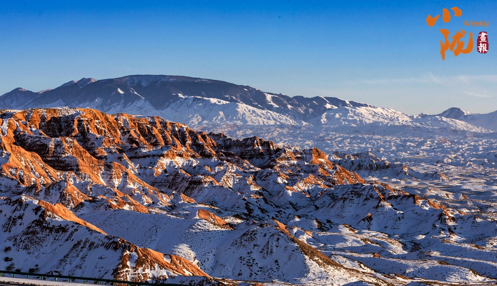 紅色丹霞被春雪覆蓋,在陽光的照耀下,紅色山崖層層疊疊、縱橫交錯,皚皚白雪點(diǎn)綴其中,唯美壯觀。平山湖的山,就在這樣悄無聲息的雪中,幻化成了氣勢磅礴的丹霞,綿延千里,浩瀚無邊。