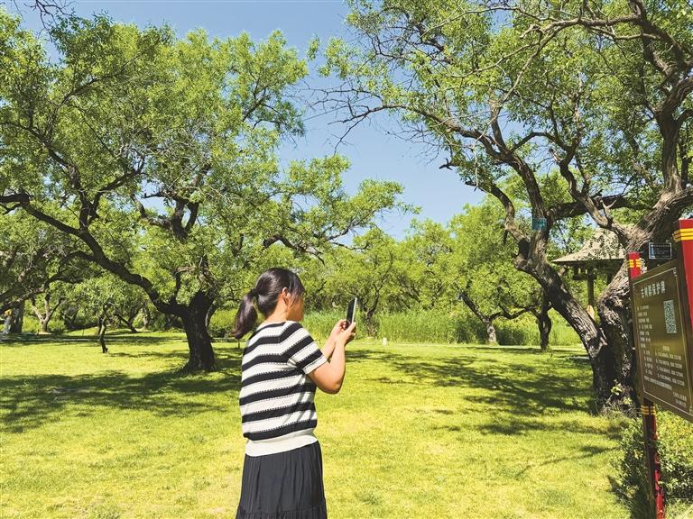 市民在仁壽山古棗樹群內(nèi)掃碼查看古棗樹群詳細(xì)信息