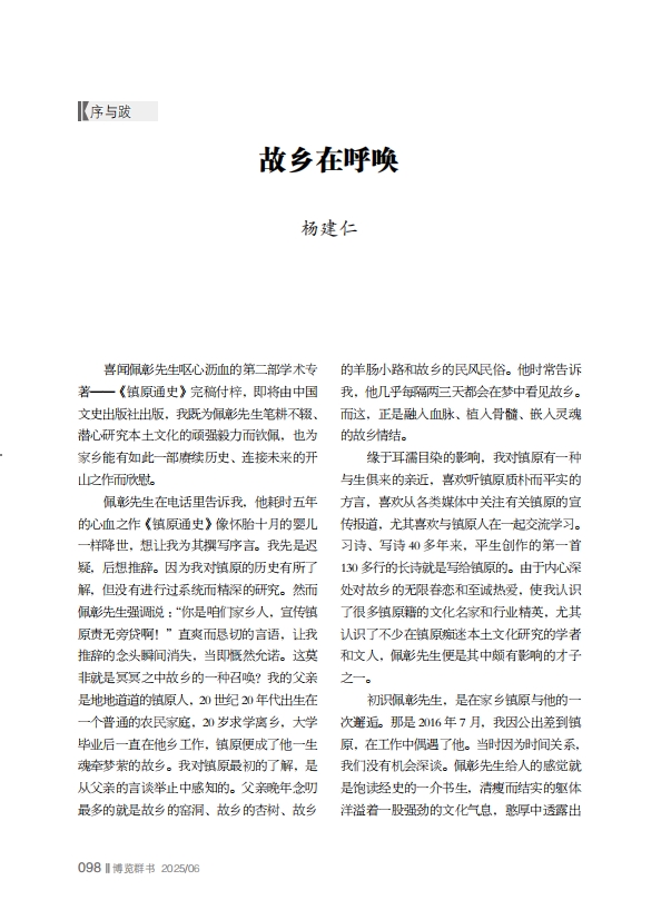 喜聞佩彰先生嘔心瀝血的第二部學(xué)術(shù)專著——《鎮(zhèn)原通史》完稿付梓,即將由中國文史出版社出版,我既為佩彰先生筆耕不輟、潛心研究本土文化的頑強毅力而欽佩,也為家鄉(xiāng)能有如此一部賡續(xù)歷史、連接未來的開山之作而欣慰。