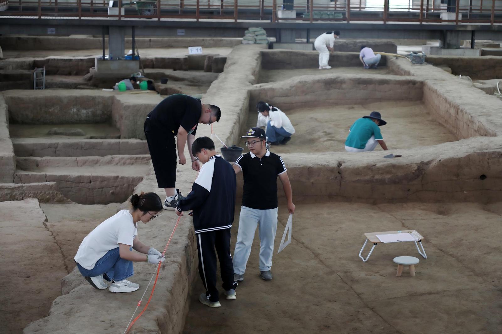不遠處,另外幾名學生也在各自負責的探方內(nèi)忙碌著,畫線、找邊、測量、繪圖,他們用手中的工具,在土層中探尋著慶陽文明脈搏的古老印記。