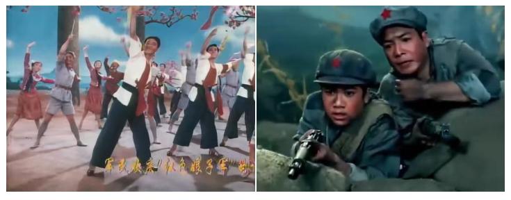 大眾傳播時代,中央電視臺的轉播率先將《紅軍不怕遠征難》從劇場送入千家萬戶。1985年,舞蹈被攝制成電影并全國公映,從機關單位到中小學校,組織化的集體觀看使其從即時性的舞臺呈現(xiàn),延伸為可供反復欣賞的歷史影像。與此同時,舞蹈中那些震撼人心的畫面與造型,被凝固定格為經典圖像,廣泛進入教材、讀物等宣傳載體,從流動的舞臺藝術轉化為深入人心的視覺符號。作品中那些簡潔而富有象征意義的舞蹈語言,也成為全國各地文藝團體與學校學習、演繹的藍本,在基層舞臺上被不斷復現(xiàn)與傳承。