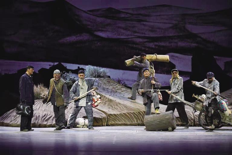 話劇《八步沙》別具匠心地從自然、歷史、人生三項(xiàng)維度,展現(xiàn)“六老漢”的奮斗歷程,再現(xiàn)“六老漢”三代人治沙的感人故事。劇中人物形象鮮明,表演真實(shí),質(zhì)樸感人,劇情節(jié)奏一氣呵成,舞美簡潔大氣,轉(zhuǎn)場巧妙,充滿戲劇沖突和懸念。