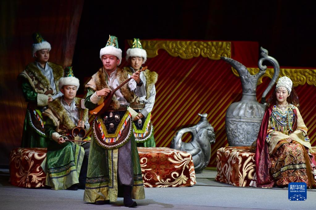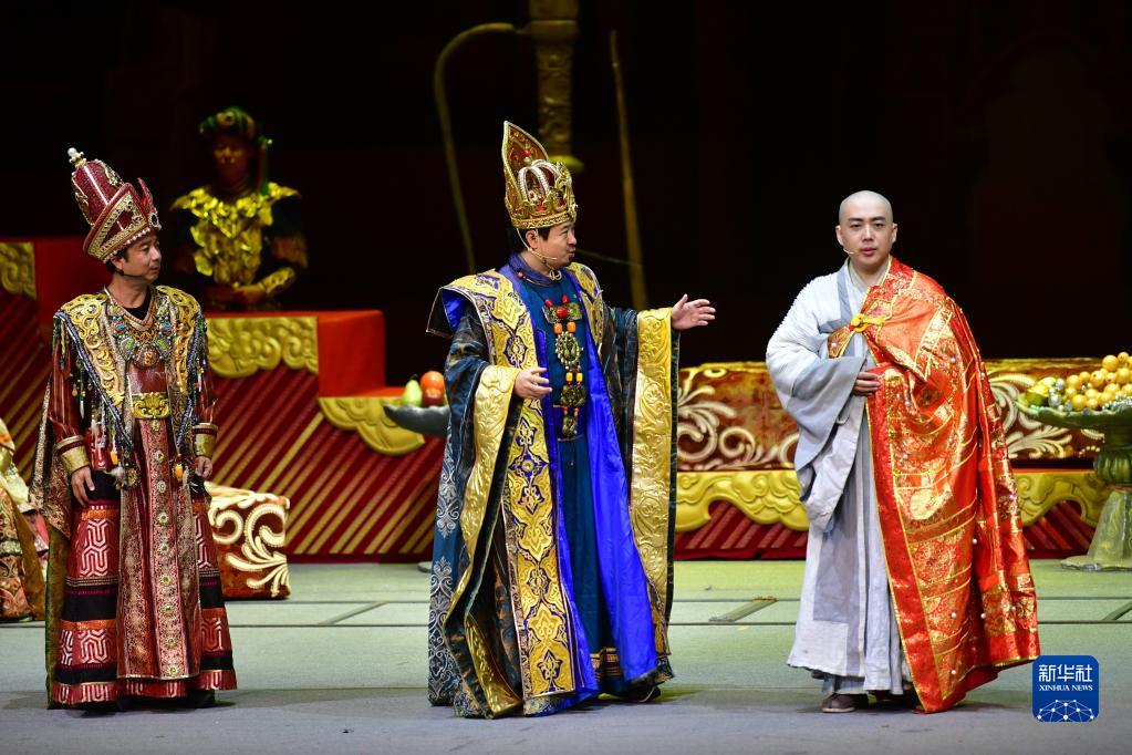 演員在敦煌大劇院表演大型民族器樂劇《玄奘西行》(9月23日攝)。
