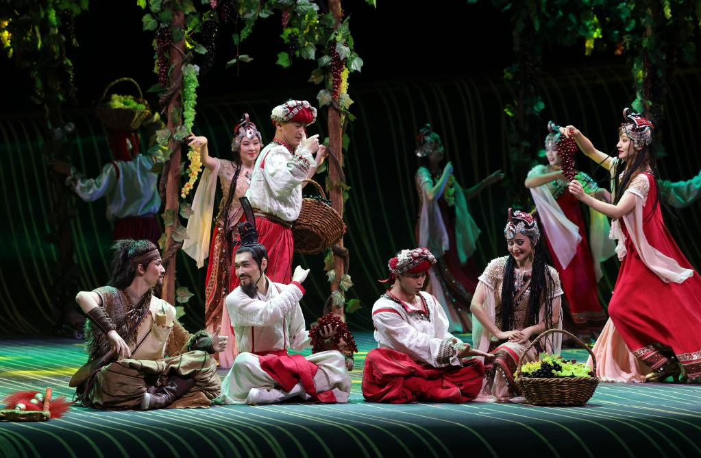 10月27日晚,在烏魯木齊文化中心大劇院,演員在舞劇《張騫》中表演。 10月27日晚,以漢代張騫出使西域為藍本創(chuàng)作的重大歷史題材舞劇《張騫》,在烏魯木齊文化中心大劇院首演。該劇由《授節(jié)》《守節(jié)》《傳節(jié)》《使節(jié)》四幕組成,演繹了張騫出使西域的“鑿空之旅”,展現(xiàn)了各民族廣泛交往、全面交流、深度交融的生動場景。 新華社記者 王菲 攝