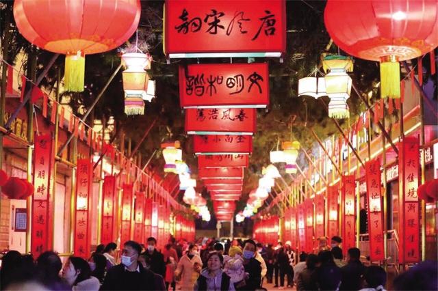 其中,甘南州夏河縣以民間舞與民歌聯(lián)歡的方式迎接春節(jié)的到來(lái),“南木特”藏戲公益性展演活動(dòng)也同步拉開(kāi)序幕;武都高山戲民間演出活動(dòng)在隴南市武都區(qū)魚(yú)龍鎮(zhèn)精彩上演;張掖市民樂(lè)縣秦腔展演讓城北民俗文化村的游客們大飽耳福;白銀市先后舉辦了景泰樹(shù)皮筆畫(huà)作品展、“美在民間”白銀剪紙傳承人作品邀請(qǐng)展;正月十三,定西市安定區(qū)內(nèi)官營(yíng)鎮(zhèn)一年一度的“凈街”民俗活動(dòng)成功舉行,現(xiàn)場(chǎng)熱鬧非凡;金昌市永昌縣“保護(hù)非遺·傳承民俗·慶祝元宵”為主題的“卍”字燈城民俗文化活動(dòng)于元宵佳節(jié)閃亮登場(chǎng);在蘭州老街穿漢服、賞花燈、游園會(huì),沉浸式體驗(yàn)傳統(tǒng)文化成為新民俗。