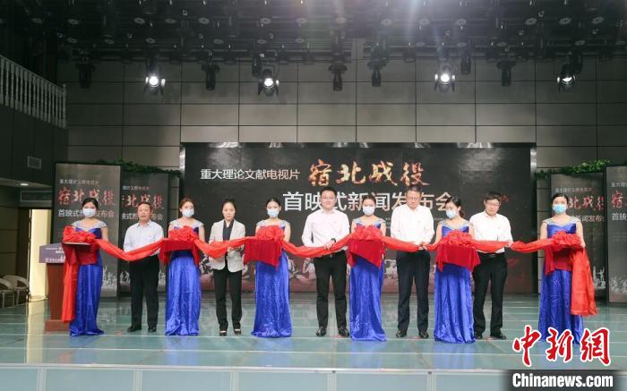 江蘇省宿遷市宿豫區(qū)電視臺分會場進行《宿北戰(zhàn)役》首映剪彩儀式?!⒘帧z