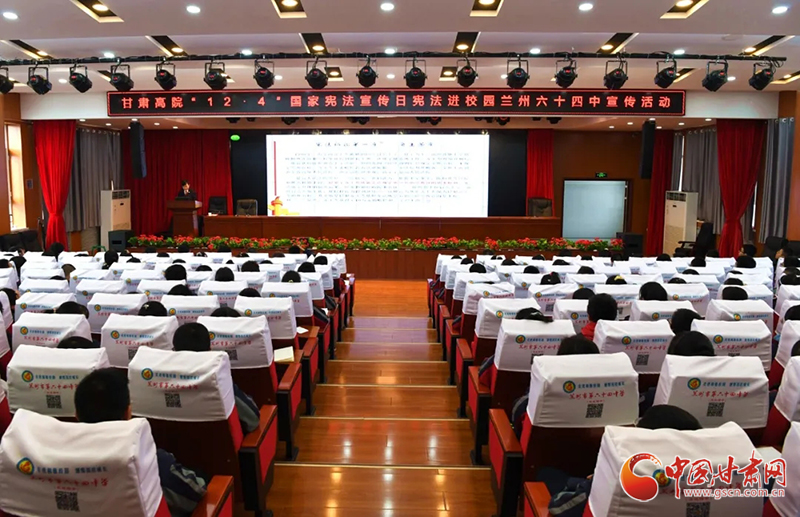 中國甘肅網(wǎng)12月4日訊(本網(wǎng)記者 李紅軍)12月4日是第七個“國家憲法日”。今天下午,甘肅省法院少年法庭的法官走進(jìn)蘭州市第六十四中學(xué),開展以“深入學(xué)習(xí)宣傳習(xí)近平法治思想、大力弘揚憲法精神”為主題的憲法進(jìn)校園宣傳活動。該校300余名師生代表在學(xué)術(shù)報告廳聆聽了宣講報告,兩名基層法院人民陪審員應(yīng)邀參加了活動。