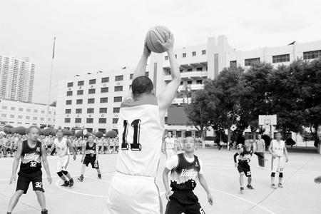 比賽日18時30分,操場西面進(jìn)行的是四監(jiān)區(qū)與九監(jiān)區(qū)的比賽,進(jìn)入第三節(jié)比分僅僅相差2分。九監(jiān)區(qū)的“閃電”突然得球,迅速突破,進(jìn)入對方籃下,左手投籃的同時,對方犯規(guī),進(jìn)球有效且加罰一次,九監(jiān)區(qū)的啦啦隊(duì)助威聲一浪高過一浪……
