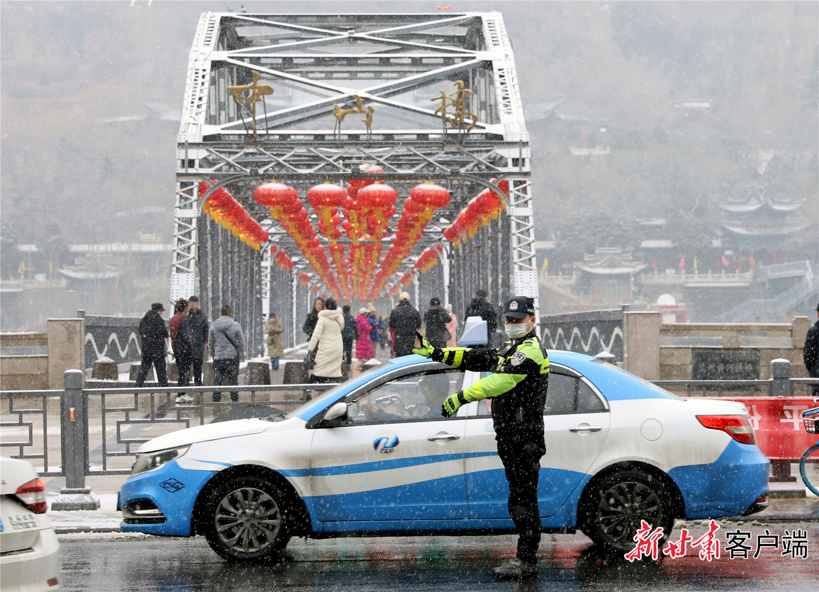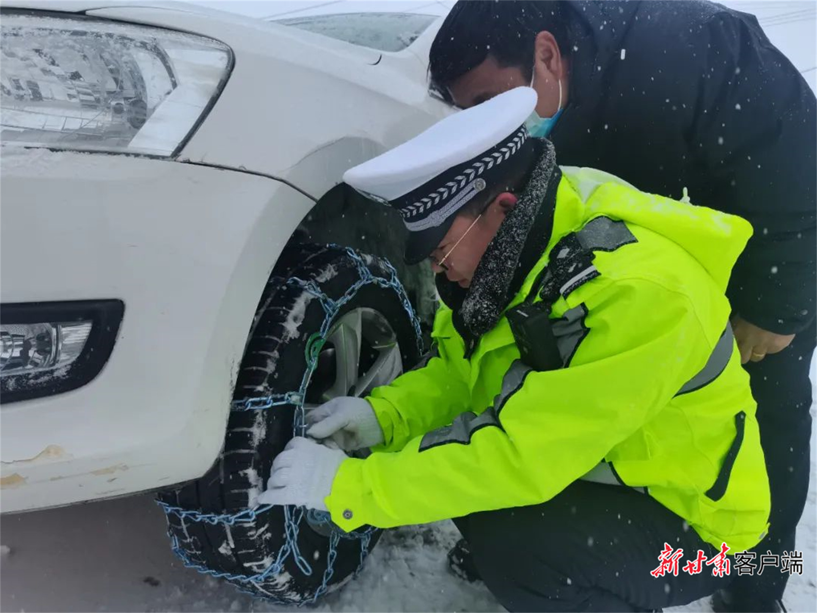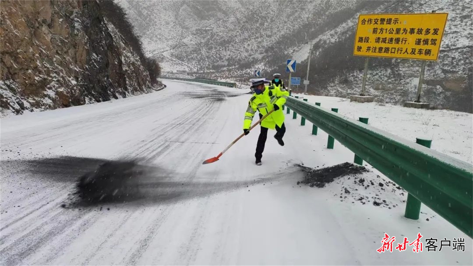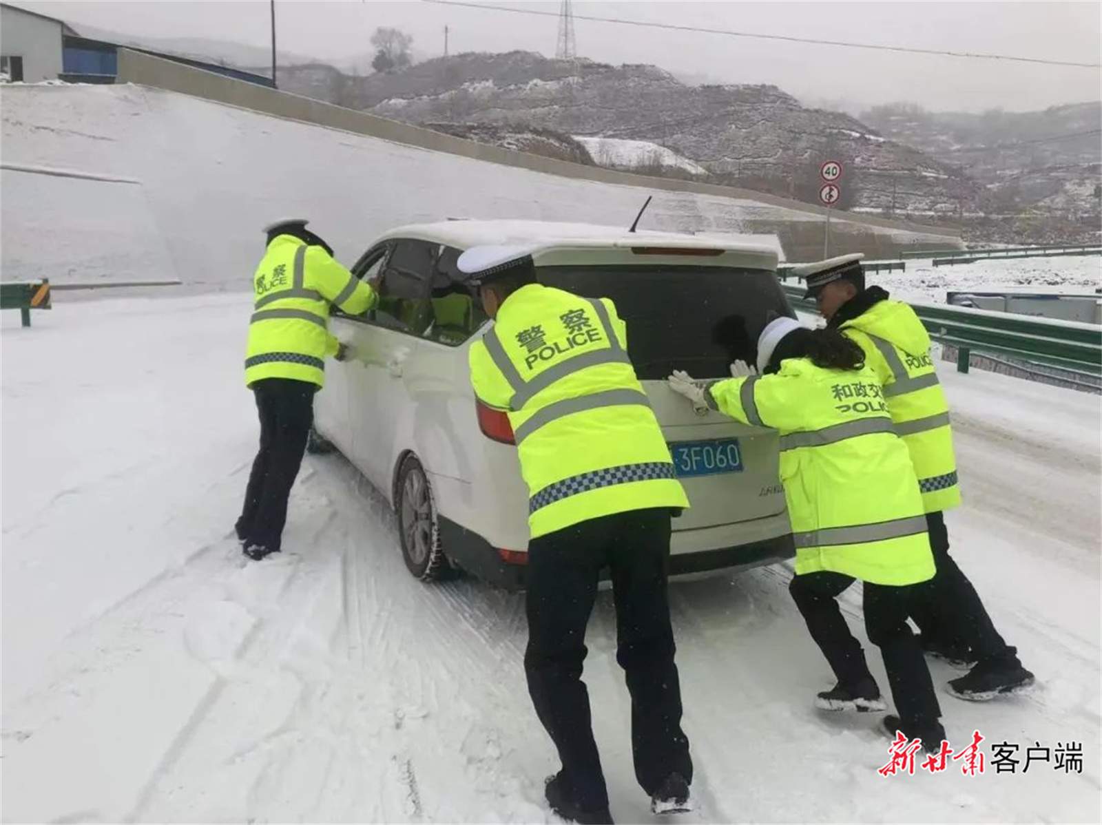 新甘肅客戶端訊(新甘肅·每日甘肅網(wǎng)記者 萬及敏)2月8日上午,甘肅多地出現(xiàn)降雪天氣,部分道路出現(xiàn)積雪結(jié)冰現(xiàn)象。為最大限度保障群眾出行安全,預(yù)防和減少道路交通事故的發(fā)生,全省公安機關(guān)1.2萬公安民輔警奮戰(zhàn)一線,加大重點路段巡邏管控力度,采取預(yù)警提示、除冰、引導(dǎo)車輛減速慢行、封閉道路、幫助群眾推車等措施,嚴防交通事故發(fā)生,為群眾的平安出行保駕護航。
