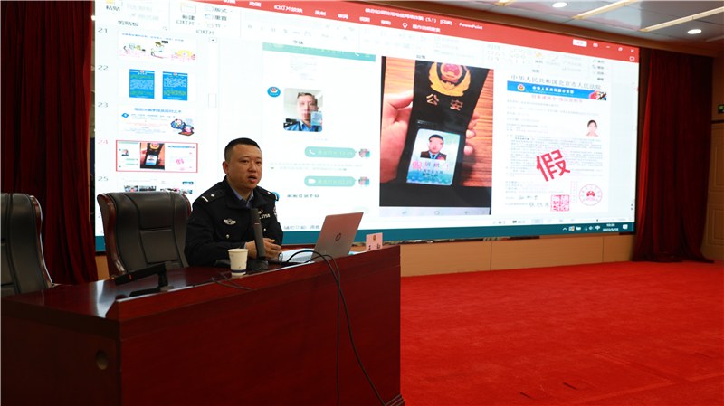 培訓中,兩名反詐教官結合自身工作實踐經驗和詐騙犯罪特點規(guī)律,采用以案說教的方式,對電信網絡詐騙犯罪的形勢,電信詐騙常見騙術、花樣、手法,識別防范電信詐騙方法等內容進行了講解。