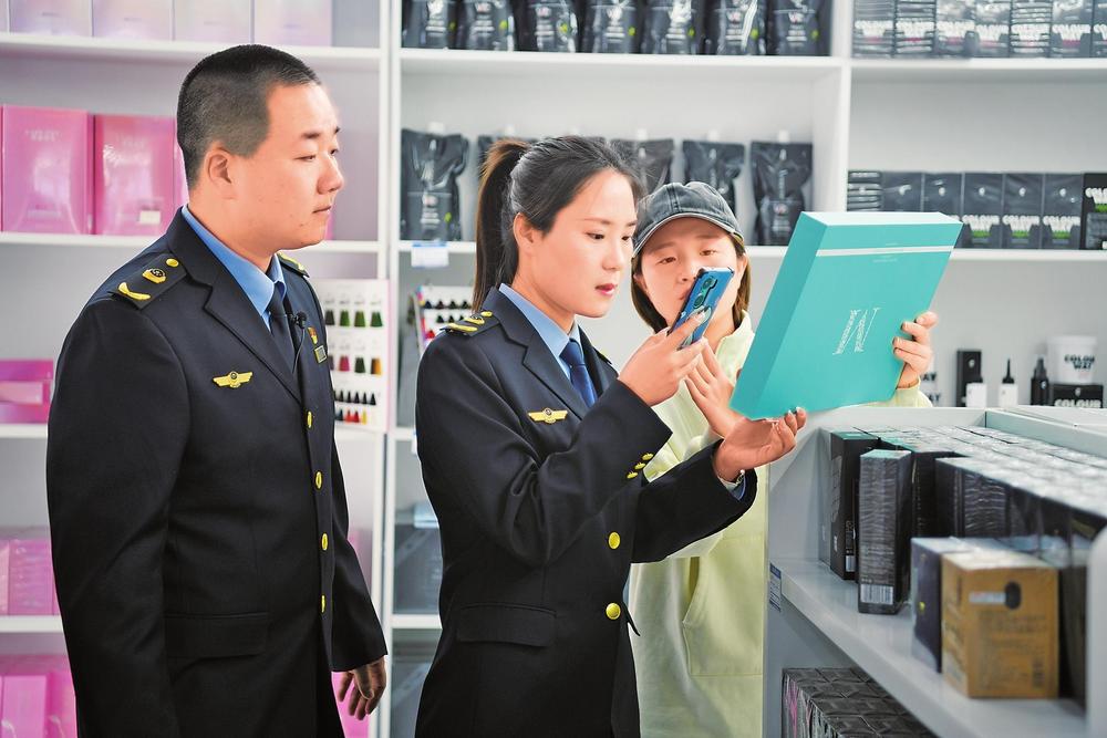 3月12日,在“3·15”國際消費者權(quán)益日來臨之際,蘭州市市場監(jiān)督管理局配合甘肅省藥品監(jiān)督管理局對化妝品批發(fā)市場進行檢查,指導企業(yè)規(guī)范經(jīng)營,維護消費者權(quán)益。新甘肅·甘肅法治報記者王輝攝