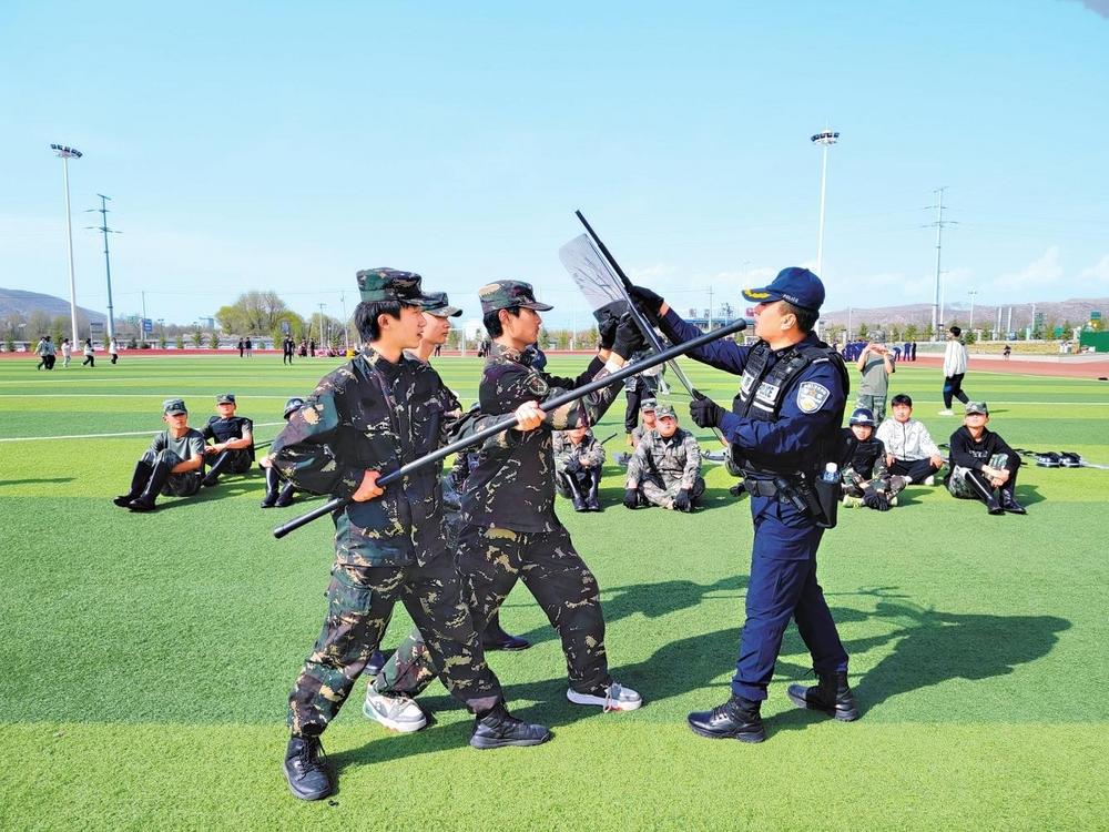 公安民警示范演練反恐防暴技能。4月11日,臨洮縣公安局組織警務(wù)實戰(zhàn)教官到定西市職業(yè)技術(shù)學(xué)校開展反恐防暴演練培訓(xùn)。新甘肅·甘肅法治報通訊員李鴻昌攝