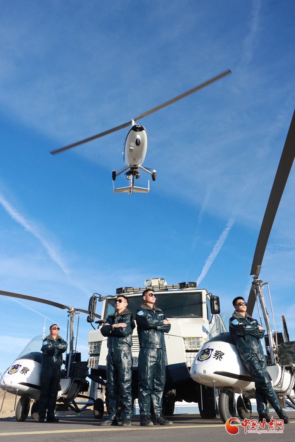 甘肅出入境邊防檢查總站酒泉邊境管理支隊(duì)利用旋翼機(jī)在馬鬃山邊境管理區(qū)戈壁荒漠地區(qū)開(kāi)展空中巡防任務(wù)。該隊(duì)的成立成為甘肅出入境邊防檢查總站“科技興警、科技管邊”的一張亮麗名片,標(biāo)志著“智慧邊境、數(shù)字邊境”平安邊境體系的初步形成。“飛天警隊(duì)”是全國(guó)移民管理系統(tǒng)首支旋翼機(jī)隊(duì)成立于2020年7月,由9名民警組成,平均年齡不超過(guò)30歲。