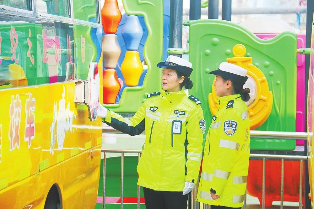 民警在檢查校車安全設(shè)施。2月19日,蘭州市公安局交警支隊七里河大隊民警走進七里河區(qū)世紀之星幼兒園,開展校車啟封安全檢查。 新甘肅·甘肅法治報記者王輝攝