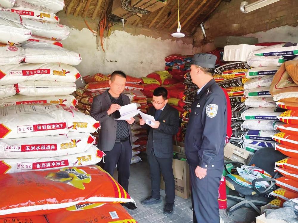 民警聯(lián)合有關(guān)部門開展農(nóng)資安全檢查。環(huán)縣公安局供圖