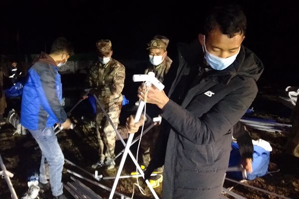 4月1日當(dāng)晚,長(zhǎng)須貢瑪鄉(xiāng)紀(jì)委干部跟隨救援隊(duì)深入震中江瑪村等地開(kāi)展災(zāi)情摸排和群眾救助工作,確保各類(lèi)救災(zāi)物資及時(shí)發(fā)放到位。圖為長(zhǎng)須貢瑪鄉(xiāng)紀(jì)檢監(jiān)察干部在受災(zāi)群眾臨時(shí)安置點(diǎn)參與救災(zāi)帳篷搭建工作。