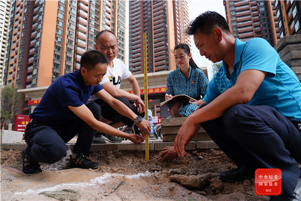 云南省昆明市西山區(qū)駐村一線紀檢監(jiān)察員對城中村改造道路施工質(zhì)量進行督查,確保路基建設質(zhì)量,建人民滿意工程。(云南省昆明市西山區(qū)紀委監(jiān)委 尹彪 攝)