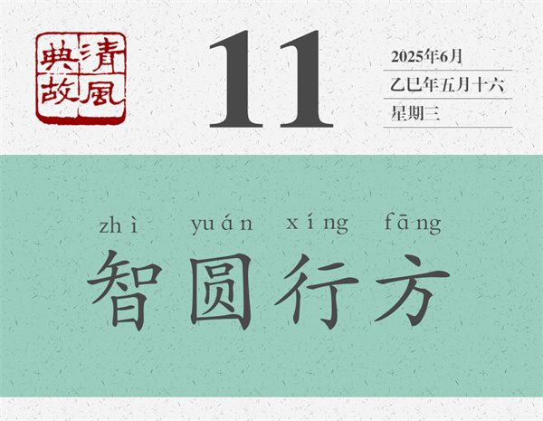 “智圓行方”說的是思與行的關(guān)系問題。通俗地說,就是腦子要靈活,手腳要規(guī)矩。明人張居正《襄毅楊公墓志銘》:“維公之德,智圓行方,忠不近名,言不泥常。”思與行,看起來各自獨立,實際上密不可分。任何事情,都得想好了再做。怎樣才能想好呢?那就得把自己能想到的各種可能都拿出來分析分析、比較比較;如果還覺得不夠,那就得跟別人交流,跟別人溝通。同樣,做任何事情,都得一以貫之。只要認準了、認定了,就要堅持做下去,不能今天這樣明天那樣,今天聽你的明天聽他的;也不能搖搖擺擺,走走停停。久久為功,勝利才會向你招手。