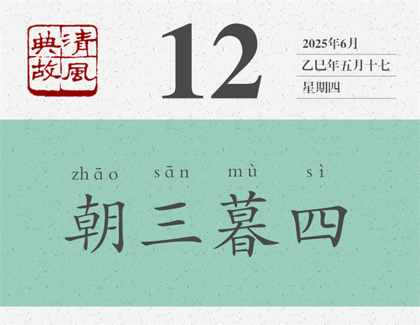 “朝三暮四”也寫作“朝四暮三”,指在不增加成本的基礎(chǔ)上,或者在換湯不換藥的情況下,善于用智謀來說服或駕馭他人。但是,不知從何時起,它們就成了“朝秦暮楚”的代名詞,用來比喻一個人見異思遷、喜新厭舊,或三心二意、反復(fù)無常。