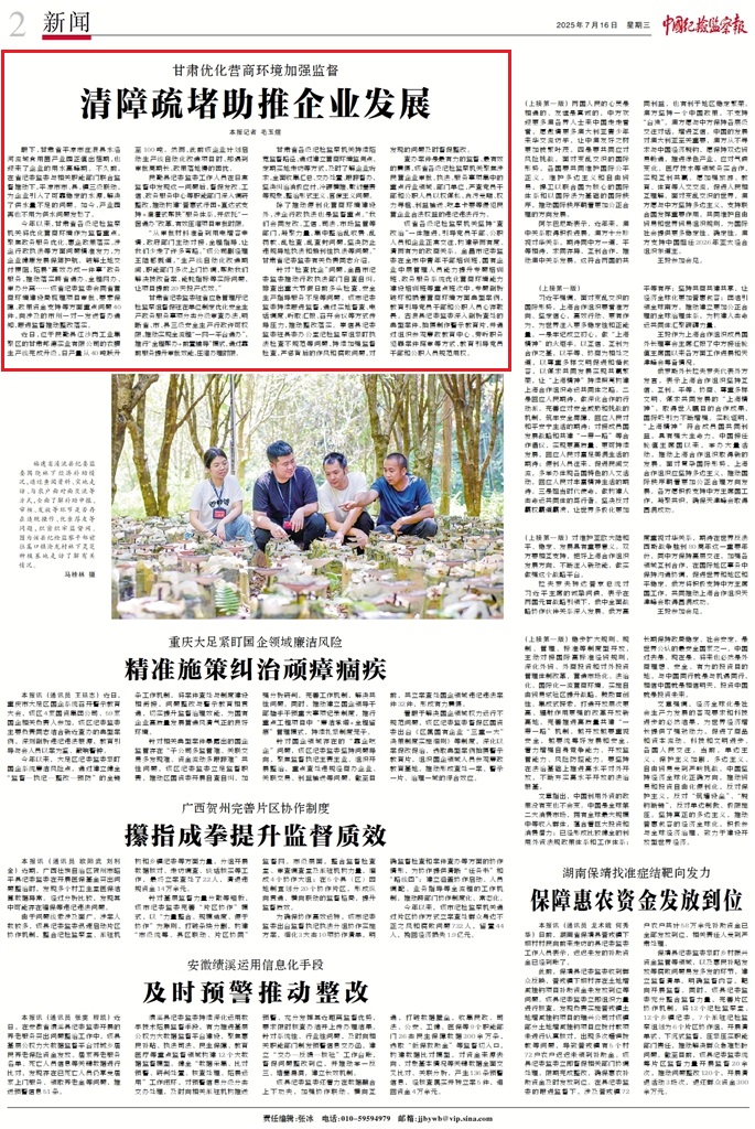 甘肅省各級紀(jì)檢監(jiān)察機關(guān)持續(xù)拓寬監(jiān)督路徑,通過建立營商環(huán)境監(jiān)測點、定期實地走訪等方式,及時了解企業(yè)訴求,全面收集匯總、交辦處置、跟蹤督辦,堅決糾治消極應(yīng)付、冷硬橫推、敷衍塞責(zé)等現(xiàn)象,整治形式主義、官僚主義問題。