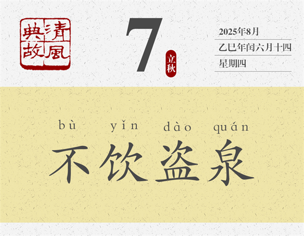 “盜泉”因一個“盜”字,而被賦予不義之財(cái)、不當(dāng)之得之意??鬃硬伙嫳I泉,就是要躲開它,要遠(yuǎn)離它,以示其清高,以表其操守。孔子的大弟子曾參也是這樣,《淮南子•說林訓(xùn)》:“曾子立廉,不飲盜泉。”后世即以“不飲盜泉”為典,比喻珍惜名譽(yù),自守清白。白居易《感鶴》:“鶴有不群者,飛飛在野田。饑不啄腐鼠,渴不飲盜泉。”