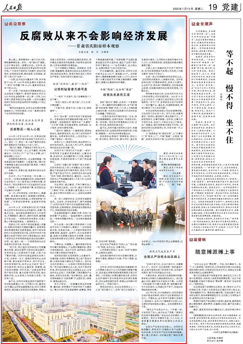 全面從嚴(yán)治黨永遠(yuǎn)在路上。慶陽(yáng)的實(shí)踐是警示,更是啟示:反腐敗從來(lái)不會(huì)影響經(jīng)濟(jì)發(fā)展,反而有利于經(jīng)濟(jì)發(fā)展持續(xù)健康。黃土塬上的清風(fēng),正吹拂出更廣闊的發(fā)展天地。(記者 張洋 王錦濤)