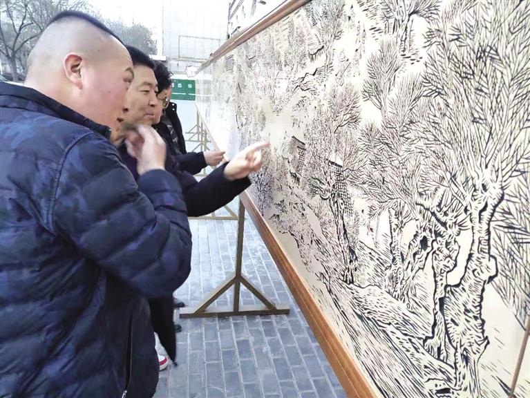 中國甘肅網(wǎng)1月22日訊 據(jù)蘭州晚報(bào)報(bào)道(記者 雒煥素 文/圖) 1月21日,長19米、寬0.91米的完整版純手工木刻作品《清明上河圖》,由武威民間手工書法木刻師安文宇耗時(shí)4年精心雕刻完成后展出。該木刻作品中的人物、樹木、樓閣、木船、水流、牲畜等都雕刻得細(xì)致入微、栩栩如生、逼真?zhèn)魃?,完美再現(xiàn)了《清明上河圖》的神韻。
