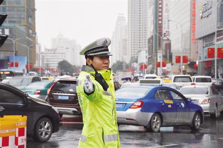 當日城關(guān)交警大隊結(jié)合轄區(qū)各主要路段交通通行狀況,適時調(diào)整警力,采取固定執(zhí)勤和巡邏執(zhí)勤相結(jié)合的方式,加大路面巡查力度,在重點時段、重點路段增派警力和警車,提高見警率,及時對過往車輛進行疏導(dǎo),全力保障高峰時段和主要交通路口不發(fā)生交通擁堵。同時依托大隊指揮室智能交通管控平臺,加強視頻巡查,第一時間掌握路面情況,發(fā)現(xiàn)擁堵路段迅速指令路面警力開展疏堵保暢,有效保障了雨天道路交通安全暢通有序。