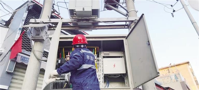 2月15日下午,正當市民們回家準備歡度元宵節(jié)之際,路燈設施養(yǎng)護所維修四班班長石興和他的團隊對北濱河路白云賓館附近的變壓器進行檢測。
