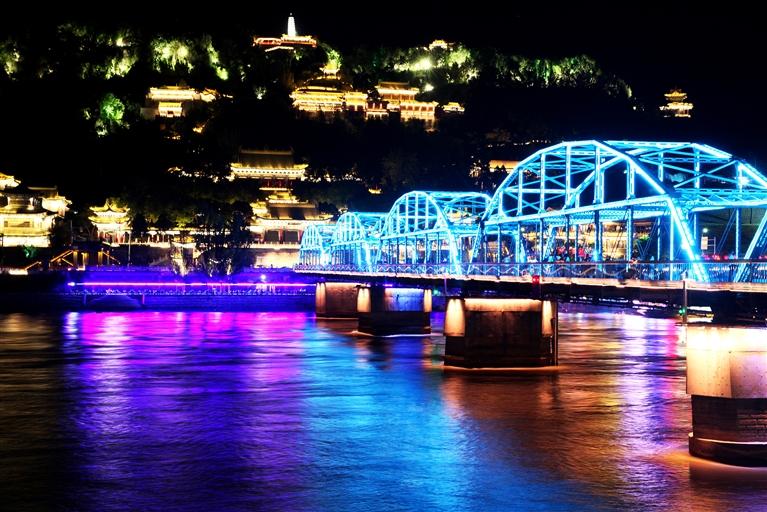 中國甘肅網(wǎng)5月24日訊 據(jù)蘭州日報報道(記者 張建平 攝)為迎接甘肅省第十四次黨代會勝利召開,我市在標(biāo)志性橋梁、廣場及樓體精心組織以“蘭州藍”為主題的燈光秀,營造濃厚的喜慶氛圍。中山橋、黃河樓等處燈光展示“蘭州藍”,這顯示了全市上下守護碧水藍天的信心,更昭示著全市黨員干部堅定垂范清廉蘭州,共建政治生態(tài)“蘭州藍”的決心。