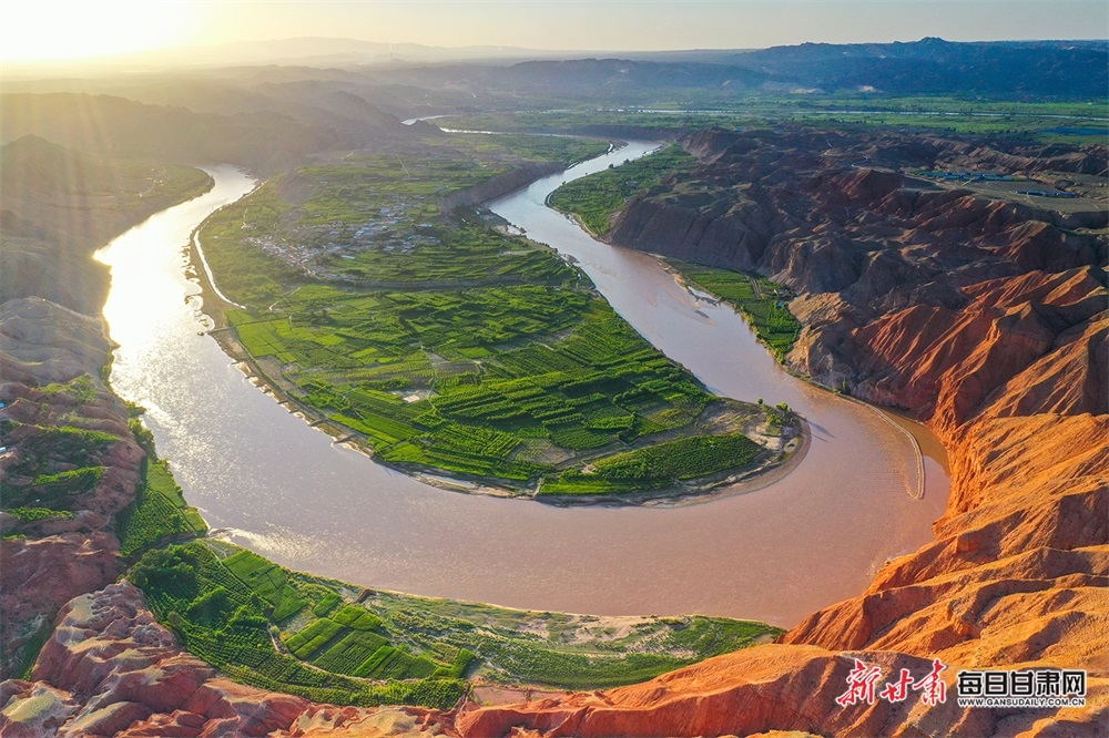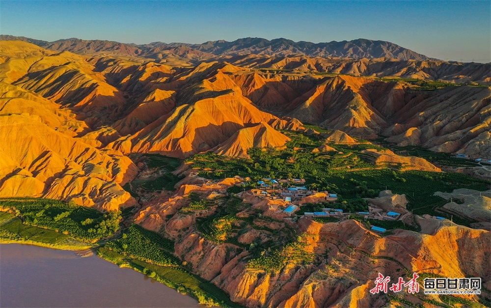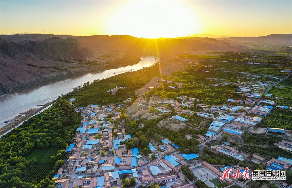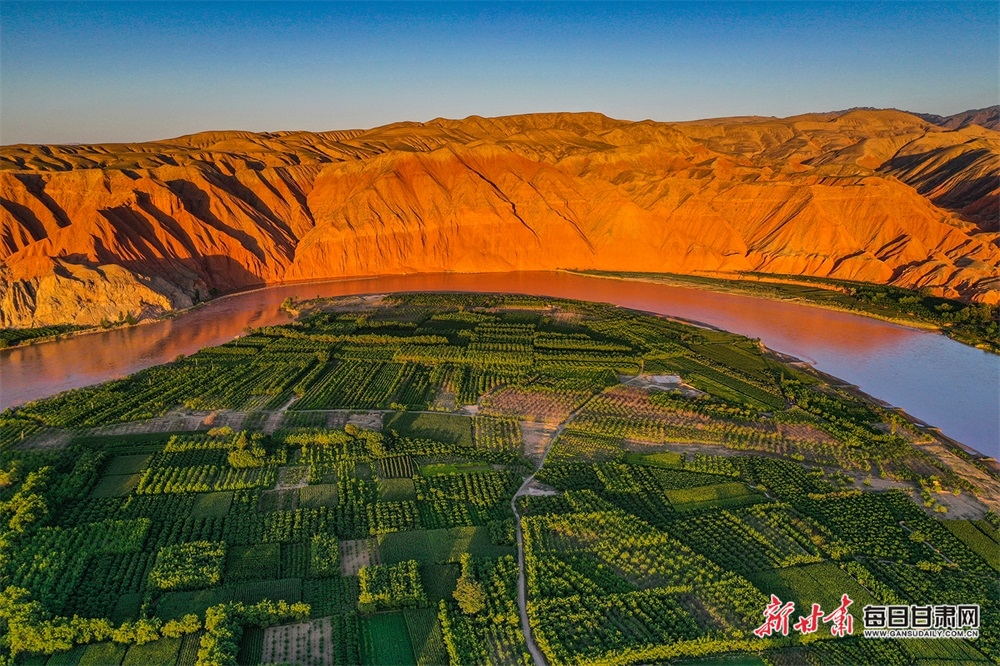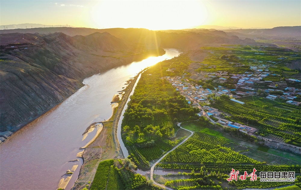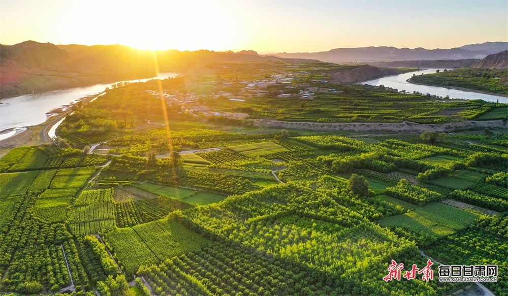夏日,夕陽西下,黃河在景泰五佛鄉(xiāng)境內(nèi)的車木峽繞了個大大的彎,位于黃河峽谷中的 車木峽山村高山環(huán)繞,周圍是成片的樹林,廣袤的田野閃耀著瑰麗的色彩,靜靜地躺在綠色的懷抱之中。
