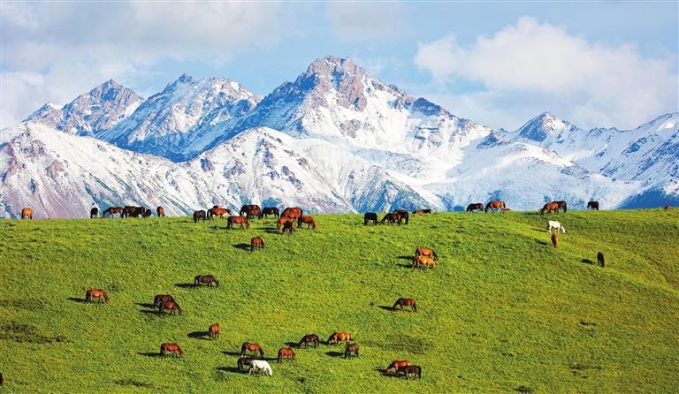 祁連山下的山丹馬場(chǎng)。甘肅省持續(xù)加強(qiáng)祁連山全域保護(hù)和系統(tǒng)修復(fù),依托現(xiàn)代科技建設(shè)“智慧祁連”,形成“天地空”一體化監(jiān)測(cè)網(wǎng)絡(luò),生態(tài)治理走上正規(guī)化信息化軌道。王 超攝(中經(jīng)視覺(jué))