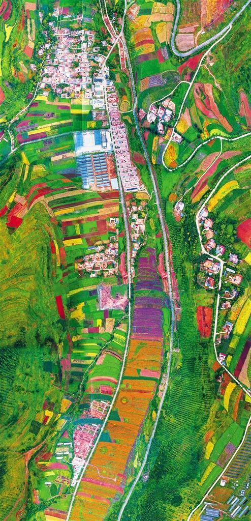 俯瞰渭源縣田家河鄉(xiāng)元古堆村新貌。元古堆村通過(guò)發(fā)展農(nóng)產(chǎn)品加工、鄉(xiāng)村旅游、電子商務(wù)、光伏發(fā)電等產(chǎn)業(yè)實(shí)現(xiàn)脫貧摘帽,日子越過(guò)越紅火。王 濤攝(中經(jīng)視覺(jué))