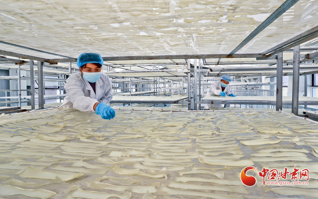 深秋時(shí)節(jié),隨著天氣轉(zhuǎn)涼,甘州區(qū)田間地頭的農(nóng)活已進(jìn)入尾聲,農(nóng)戶們開始了農(nóng)閑季。張掖市甘州區(qū)龍渠鄉(xiāng)下堡村通過“黨支部+公司+專業(yè)合作社+農(nóng)戶”的發(fā)展模式,組織閑下來的村民進(jìn)行當(dāng)?shù)貍鹘y(tǒng)小吃“龍渠粉皮面筋”的加工,通過“線上+線下”的銷售模式,產(chǎn)品受到西北地區(qū)廣大消費(fèi)者的歡迎,傳統(tǒng)小吃加工也成為了當(dāng)?shù)剞r(nóng)戶增收的又一新途徑。