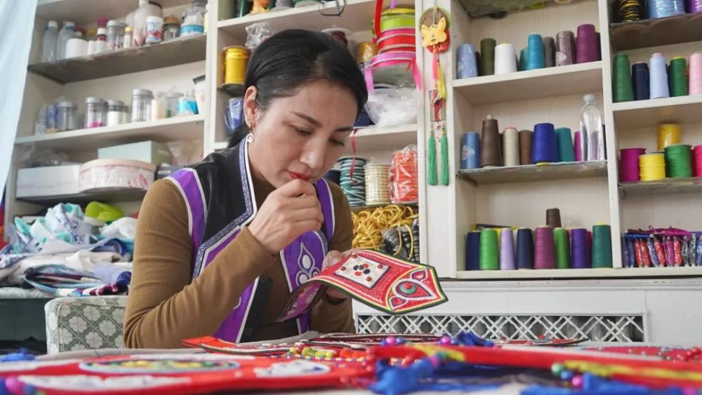 致富不忘鄰,她經(jīng)營(yíng)的富達(dá)民族服飾工藝有限責(zé)任公司現(xiàn)擁有資產(chǎn)900多萬(wàn)元,固定員工25人,靈活做工人員60余人。楊海燕還依托公司成立了裕固族服飾傳承培訓(xùn)基地,每年舉辦3期至5期手工技能培訓(xùn)班,目前已培訓(xùn)社區(qū)無(wú)業(yè)人員3000多人次,帶動(dòng)就業(yè)220多人。其中,30多人通過(guò)培訓(xùn)已自主創(chuàng)業(yè)走上了致富路。