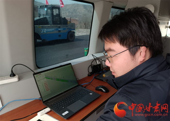 中國甘肅網(wǎng)4月6日訊(本網(wǎng)記者 宋芳科 實(shí)習(xí)生 王文博)“駕駛員可以休息一下,下面由無人駕駛集群智能化攤鋪路面。”4月6日上午,甘肅路橋安臨路面二標(biāo)項(xiàng)目瀝青路面鋪設(shè)現(xiàn)場,無人駕駛的鋪路機(jī)組成集群駛?cè)胧┕がF(xiàn)場,在無駕駛員操作的情況下智能前行,實(shí)現(xiàn)公路鋪設(shè)碾壓一體化成型,而指揮這些龐大工程車輛的僅僅是一名技術(shù)人員和一臺(tái)筆記本電腦,真正實(shí)現(xiàn)了路面鋪設(shè)智控化。