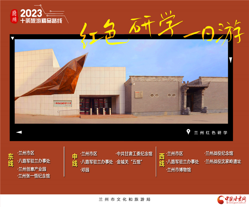 5.蘭州紅色研學(xué)1日游。蘭州是多彩的,有黃河的黃、藍(lán)天的藍(lán),還有皋蘭山上交融的綠色和土褐色。在這些繽紛色彩的環(huán)繞中,是代表著蘭州這座城市的精神內(nèi)核的紅。這一抹鮮紅,是八路軍駐蘭辦事處里滴滴答答的秘密電報,是蘭州張一悟紀(jì)念館中堅貞不屈的背影,是蘭州戰(zhàn)役沈家?guī)X遺址上的一次次沖鋒?,F(xiàn)如今,紅色研學(xué)已然成為旅游的熱門,帶著孩子去領(lǐng)略一下革命先輩的傲然風(fēng)骨,教育了孩子,也提醒著你我。“蘭州紅色研學(xué)1日游”三條線,分別為東線、中線和西線。