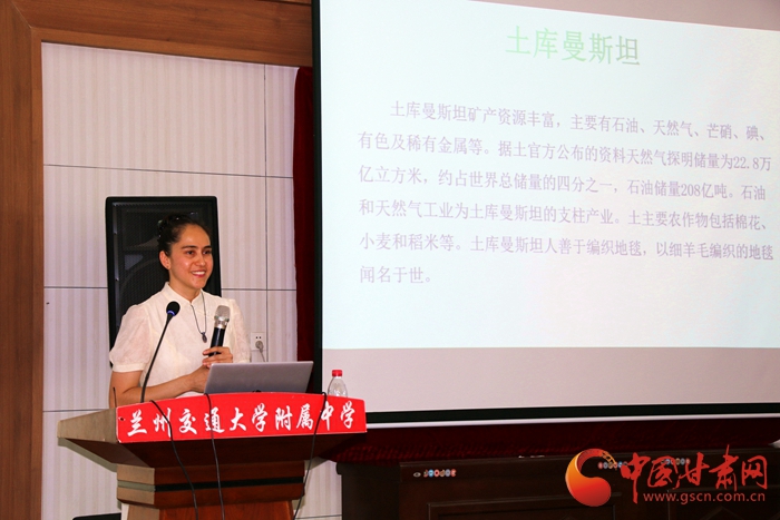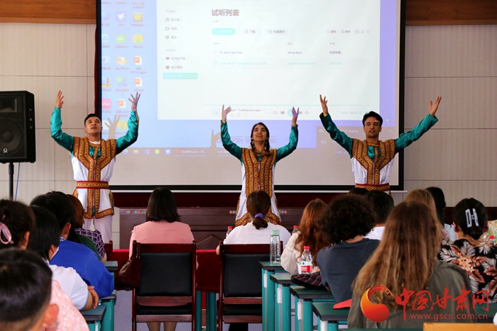 活動(dòng)中,蘭州交通大學(xué)附屬中學(xué)組織七、八年級用英語表演了詩歌朗誦、話劇、合唱、獨(dú)唱等節(jié)目,來華留學(xué)生代表獻(xiàn)上了土庫曼斯坦傳統(tǒng)舞蹈表演,現(xiàn)場氣氛熱烈。