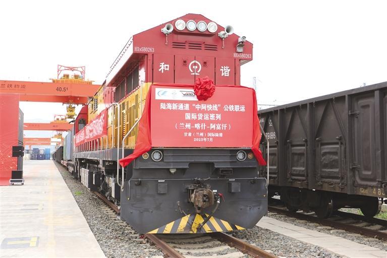 陸海新通道“中阿快線”公鐵聯(lián)運國際貨運班列的開行,對蘭州市打造國家重要的綜合物流樞紐和向西向南開放新高地有重大意義,不僅進一步擴大了陸海新通道在中亞地區(qū)的輻射面及國際影響力,而且體現了陸海新通道聯(lián)動中亞、融入和服務雙循環(huán)的重大作用。