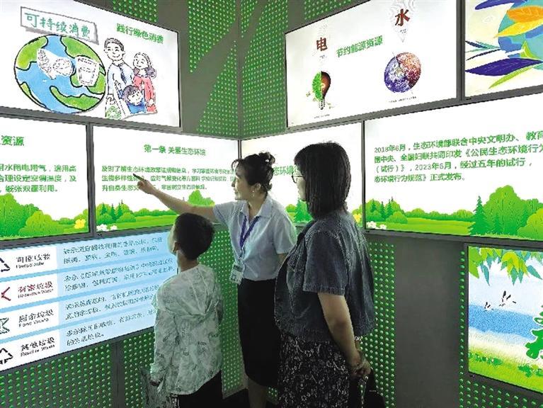 當(dāng)天上午,我市部分師生代表來到國家生態(tài)環(huán)境科普教育基地蘭州環(huán)境能源交易中心,通過觀看2023年低碳日主題宣傳片、了解《公民生態(tài)環(huán)境行為規(guī)范十條》,參加節(jié)能行動藍印章佩戴和五彩環(huán)保心愿樹許愿等環(huán)節(jié),開展了一場豐富多彩的低碳日宣傳活動。隨后基地的老師進行了現(xiàn)場碳課堂教學(xué),以“一分鐘了解碳足跡”和“碳尋100種低碳方式”為題,對全球氣候變化形勢、我國雙碳目標(biāo)、公民日常生活碳排量計算和節(jié)能降碳小竅門等內(nèi)容進行了講解,并在課后與師生們開展了有獎低碳知識問答?,F(xiàn)場觀摩和教學(xué)互動鼓勵廣大師生學(xué)以致用,將低碳理念貫穿于衣、食、住、行、用等日常生活點滴,并以身作則帶頭踐行綠色低碳的生活方式。