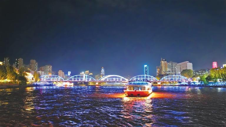 夜幕降臨,黃河兩岸璀璨霓虹逐一亮起,蘭州白塔山碼頭游船售票處、登船安檢處排起了數(shù)十米的長(zhǎng)隊(duì),“金城壹號(hào)”“悠游蘭州號(hào)”“墨跡號(hào)”等十多艘游輪載著南來北往的游客穿梭于黃河之上,為夜晚的黃河之濱添了一抹流動(dòng)的色彩。