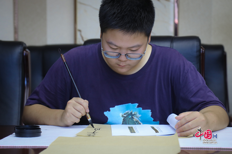 7月31日,蘭州大學(xué)古文字學(xué)強(qiáng)基計(jì)劃同學(xué)展示臨摹簡(jiǎn)牘的書法作品。中國(guó)網(wǎng)記者 鄭偉 攝