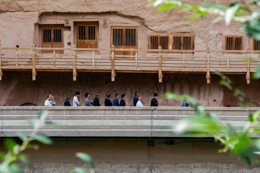 9月21日,游客在炳靈寺石窟參觀。新華社記者 郎兵兵 攝