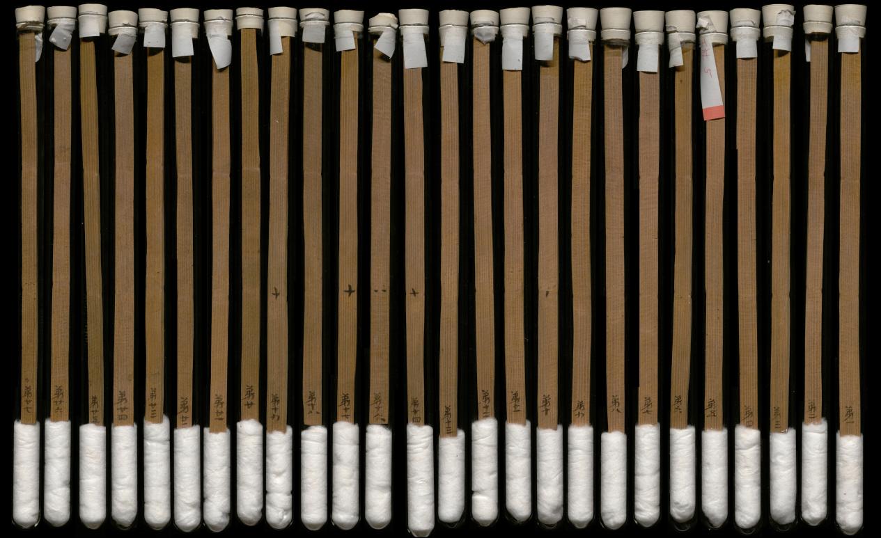 1959年,在武威市涼州區(qū)新華鄉(xiāng)磨嘴子第18號墓中,出土木簡10枚,出土時懸掛于一鳩杖之上。其內容記載了東漢永平十五年(72年)幼伯受王杖事,并錄建始二年(前31年)九月“年七十受王杖”的詔書和和平元年(前28年)毆擊王杖主當棄市的令。由于簡上無編號,出土時次序已亂,史學界稱其為“王杖十簡”。簡長23.2-23.3厘米,寬1厘米,共有240字。松木削制、兩道編繩、先書后編、墨書隸體、字跡清晰。