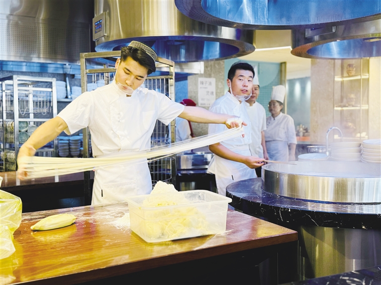 百舸爭流,千帆競渡。當(dāng)下,蘭州牛肉拉面行業(yè)紛紛在提質(zhì)升級,更新迭代。近段時(shí)間以來,蘭州牛肉拉面行業(yè)的后起之秀——周達(dá)·觀金城精品牛肉面店成為不少市民游客網(wǎng)紅打卡地標(biāo)。目前蘭州市內(nèi)有牛肉拉面館1280余家,周達(dá)·觀金城精品牛肉面品牌于三年前確立,短短的三年時(shí)間里,它是怎么做到在眾多牛肉拉面店中脫穎而出的?它到底有什么特色?和蘭州其他的老字號牛肉拉面到底有什么不一樣?優(yōu)勢在哪里?帶著這一系列的疑問,8月28日,記者走進(jìn)周達(dá)·觀金城精品牛肉面店一探究竟。
