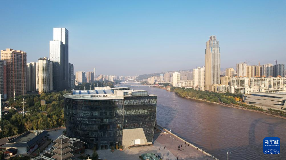 這是位于蘭州市城關(guān)區(qū)黃河南岸的蘭州音樂廳(10月17日攝,無人機(jī)照片)。新華社記者陳斌攝