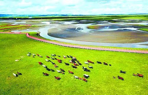 在這里,每看一眼都是風(fēng)景,每行一步都有故事,每一片土地都是一幅絕美的圖畫。黃河從云煙蒼茫的雪域高原流出,冰雪化為淙淙流水,沿途九曲回腸,匯納百川,留下一個個碧波蕩漾的湖泊,懷抱起一片片豐腴壯美的草原,孕育著一座座城鎮(zhèn)和村落,養(yǎng)育了各族兒女,播撒著希望,醞釀著生機(jī)……