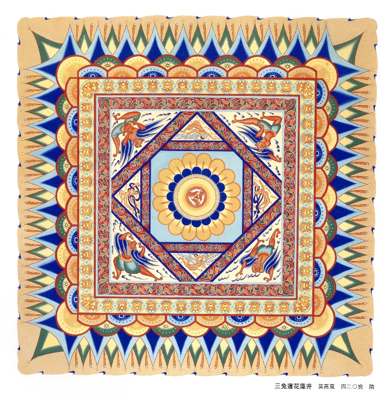 三兔共耳圖案、成熟的飛天造型、精美的紋飾圖案相互映襯,共同構(gòu)成了這幅令人嘆為觀止的藻井壁畫(huà),受到人們的廣泛關(guān)注和喜愛(ài)。